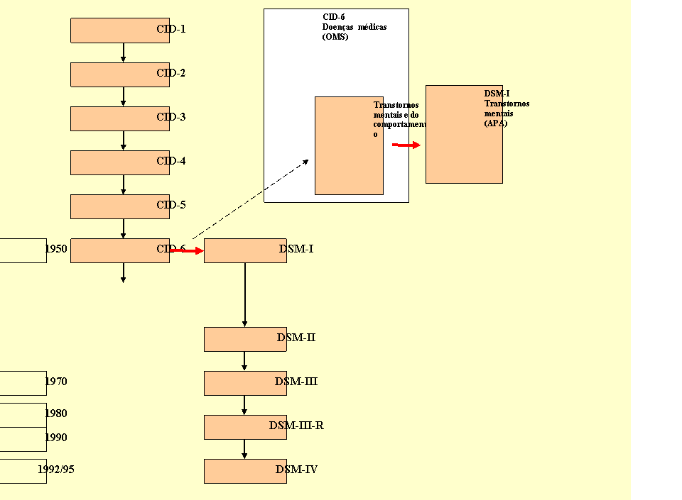 No passado tivemos inúmeras classificações, no presente temos duas com que nos preocupar, o CID-10 e a DSM-IV. Vamos examiná-las e construir uma apreciação histórica do que já foi feito no Brasil em termos classificatórios.
